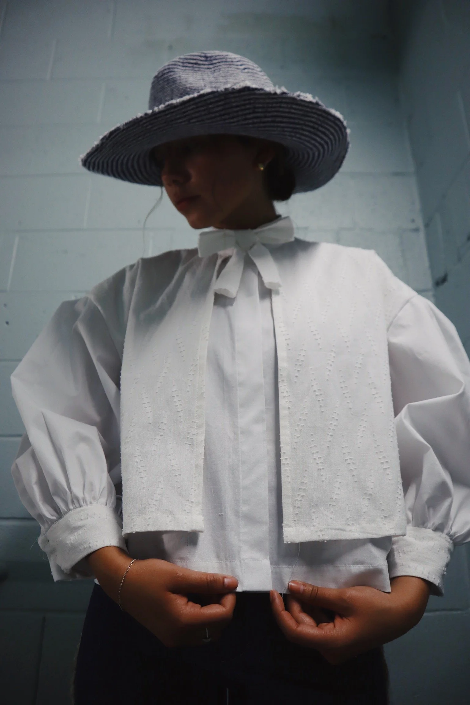 For this assignment, I recreated two runway pieces: a balloon-sleeved blouse from Hyke and form-fitted jeans with chiffon details from Chloé’s Fall 2024 collection. The project emphasized precision in pattern drafting and garment construction, while allowing for subtle personalization through fabric selection and minor design adjustments.